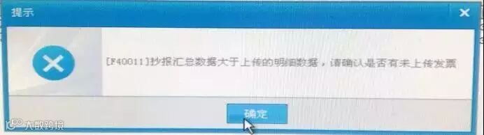 [F40011]抄报的汇总数据大于上传的明细数据,请确认是否有未上传发票。