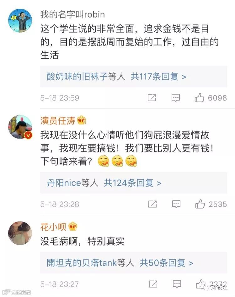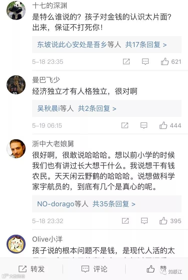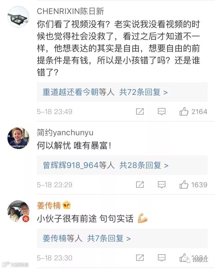 “我不像前几个人说的那么伟大,发财了要去捐款。”
