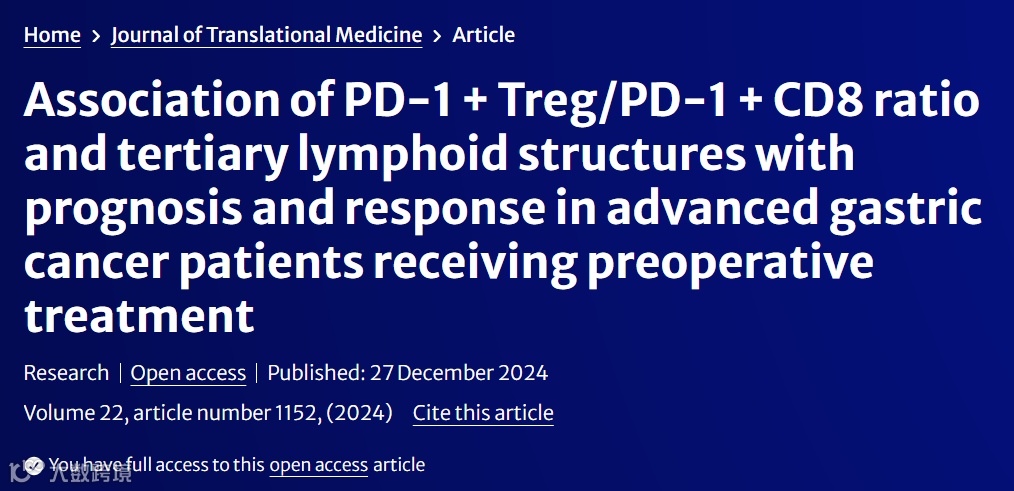 相关研究强调了 PD-1 + 调节性 T 细胞(Treg)/PD-1+CD8+T 细胞比值在预后预测中的作用。然而,该比值与三级淋巴结构(TLS)在晚期胃癌患者预后及对新辅助治疗或转化治疗响应中的关联尚不明确。