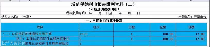 比如:某公司2018年5月5日才收到供应商2018年4月30日开具的增值税专用发票一张,发票金额100,税率17%,税额17。