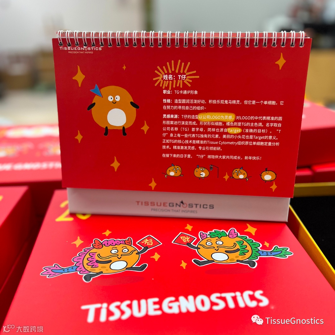 名字取自公司名称(TG)首字母,同样也源自Target(准确的目标)。“T仔”身上有一些代表TG独有的元素,美丽的小头花也是Target的意义。正如TG的核心技术是精准的Tissue Cytometry组织原位单细胞定量分析技术。精准激发灵感,专业引领前研。