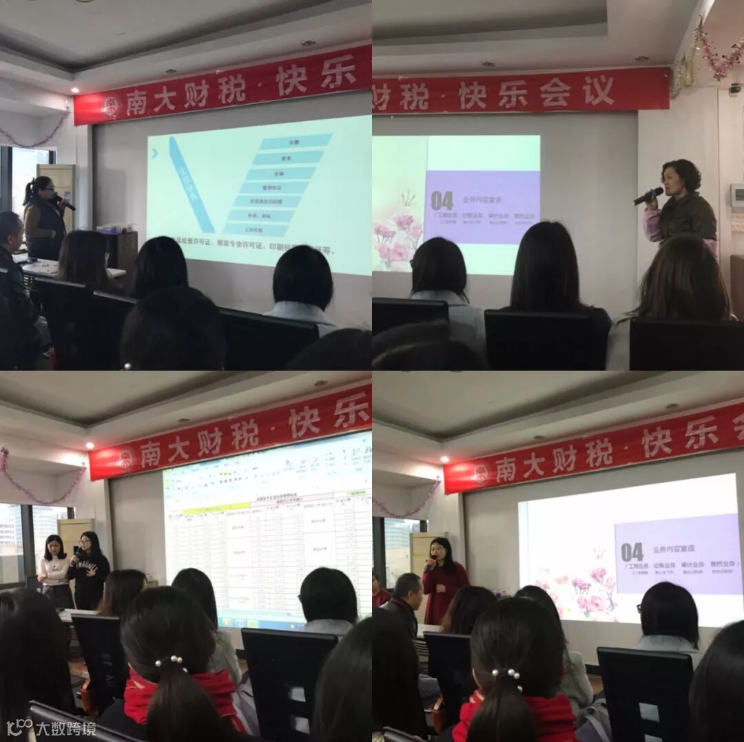 江门工商部李经理、鹤山记账部李经理、鹤山审计部王经理、电商部吕经理分别就各个部门业务在员工大会上进行培训,对于新员工是一次吸收新知识的机会,对于老员工是一次巩固业务知识的机会。南大财税全体员工在黄董事长的带领下,2018年将会旺到底!