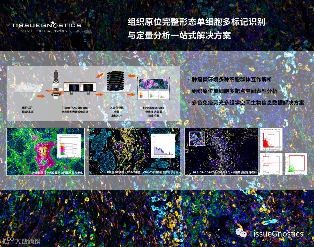 本次展会中,TG公司将携带多种原位多标单细胞空间定量、定性、定位分析方案,同时也将展示“组织流式定量分析平台”中的“TissueFAXS Spectra全景多光谱组织细胞定量分析系统”。