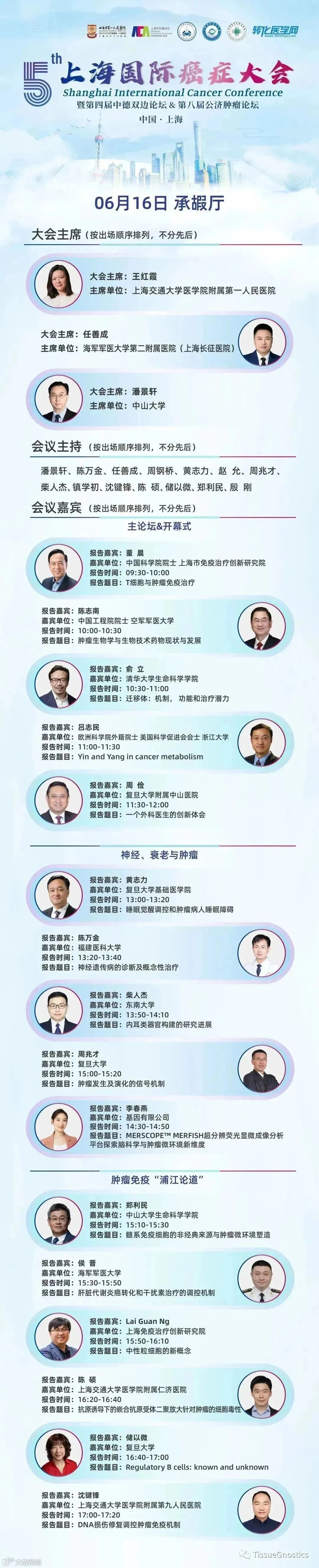 本届大会由上海交通大学医学院附属第一人民医院、海军军医大学第二附属医院(上海长征医院)、上海市抗癌协会、中国抗癌协会肿瘤异质性与个体化治疗专业委员会、长三角地区肿瘤专科联盟、北京医学奖励基金会、转化医学网共同主办;由上海市肿瘤研究所、中国医师协会精准医疗专业委员会、癌基因及相关基因国家重点实验室、上海市免疫治疗创新研究院、上海交通大学医学院分子医学研究院、上海市抗癌协会青年理事会共同协办。