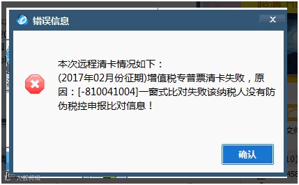 再次进入开票系统,系统会提示“金税设备已经完成清卡操作”,代表征期内抄报税、申报、清卡全部操作完毕的意思,如(图三)。如未看到该提示,可到报税处理中选择“上报汇总”,随后选择“远程清卡”即可,如选择远程清卡中提示“增值税专普票清卡失败,一窗式比对失败……”如(图四),代表企业网上申报报表没有上报成功,需要先申报后再进入开票清卡即可,清卡成功的状态查询如(图五)。若对错误提示不理解,请及时拨打95113咨询。