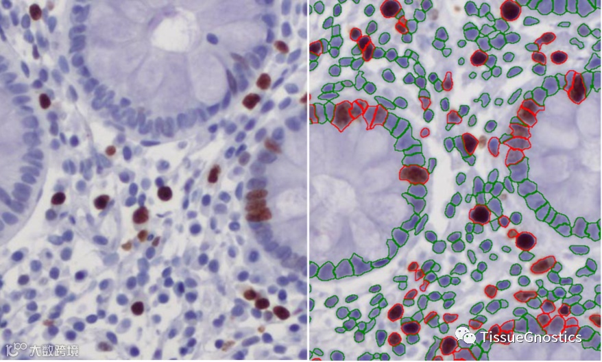 针对IHC染色中,苏木素标记的不同类型细胞核进行准确识别,不但可以通过算法分割不同大小、不同聚集程度的各类细胞核,也可以区分具有一定厚度样本中,不在相同聚焦焦面的背景细胞核。