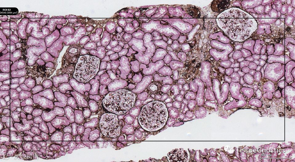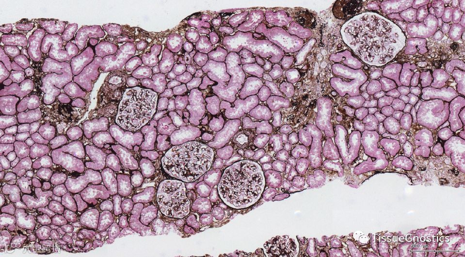 实验目的:根据银染胶原的界限,根据形态识别,对肾小管/肾小球/胶原结构以及肾毛细血管/肾脏内血管进行定量