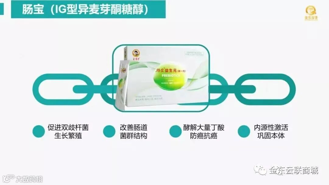 我们金嗓子肠宝与益生菌的关系在于,金嗓子肠宝新一代益生元,以蜂蜜为主要原料,其成分(IG 型)异麦芽酮糖醇,是目前益生元产品最为领先的一种。它能在肠道定置时间长达14个小时,能够给到大肠的中后端益生菌最好的营养,大量增殖从而提高人体免疫力。