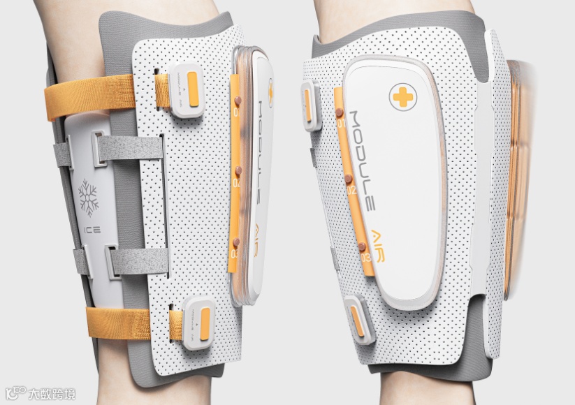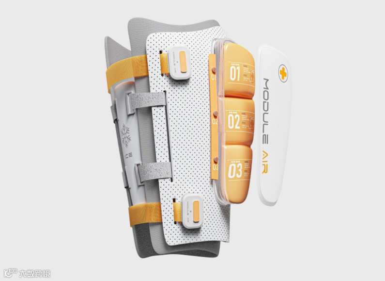 MODULE AIR旨在避免骨裂患者的二次受伤风险。方案借鉴了传统中医小夹板的设计思路,整体结构由高分子板和两侧的硅胶气囊组成。在适配不同伤员的腿型的同时,还可以提升伤员的舒适性;三个气囊在转移过程中定时充放气可以维持小腿良好的血液供应,不仅减轻对伤口的挤压,从而有效防止远端组织坏死。