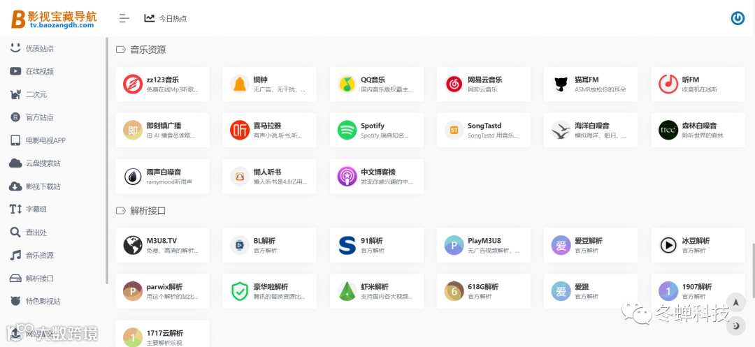 解析接口:这个菜单提供了一些影视解析接口,用户可以通过这些接口获取影视资源的真实播放地址或下载链接。 -