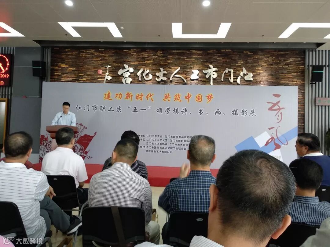本次活动首先由主办方代表江门市国风书画研究院院长冯江文作开幕式讲话;接着是市总工会副主席何玉红向新成立的工联会颁发牌匾;再是市人大副主任、市总工会主席顾达华开幕式致辞;最后全场200多位参会者有序地进行了参观展览。
