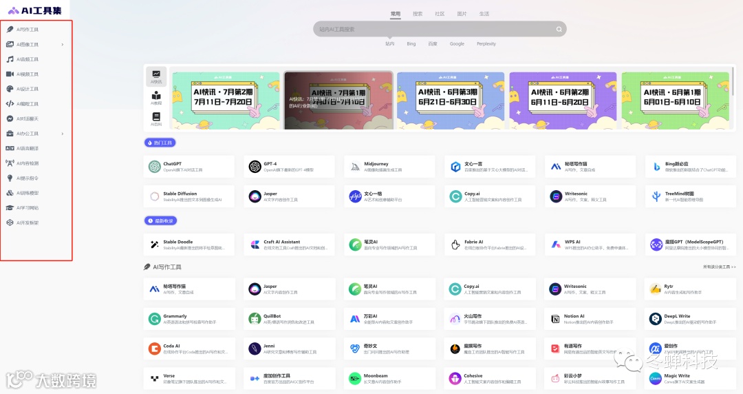 AI 工具和网站:在A工具集,你可以查看广泛的人工智能工具和应用程序的集合,本站收录了国内外数百个不同类型的AI工具,每日更新和添加最新AI工具,包括不限于AI写作工具、Al图像生成、A音频转换、AI视频制作、A编程开发、AI创意设计等分类,以满足你的不同需求。
