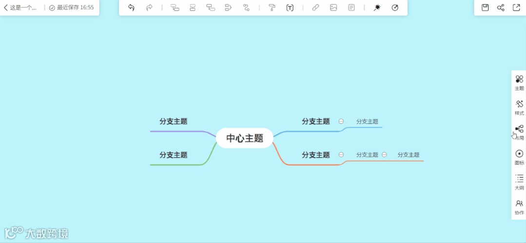 新建思维导图后,软件会默认一个布局,你可以直接在此布局上进行创作。如果需要切换布局,点击『 布局 』按钮,选择对应的布局即可。