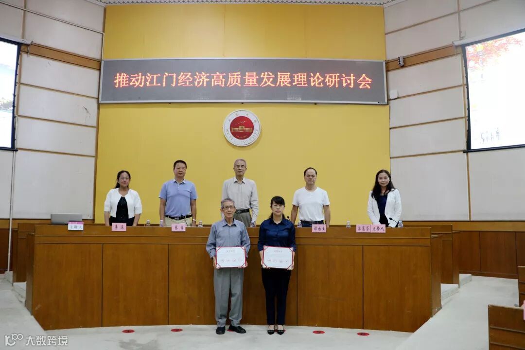 据了解,此次“推动江门经济高质量发展理论研讨”征文活动针对性强,以经济高质量发展为主题,得到社会各界的广泛响应,共收到征文67篇,由学会课题组撰写的《粤港澳大湾区背景下江门外贸如何增量提质的调研报告》论文在众多优秀论文中脱颖而出,在“推动江门经济高质量发展”为主题的征文活动中荣获一等奖。在研讨会现场,活动主办方对获奖代表逐一颁发奖状,以示鼓励。