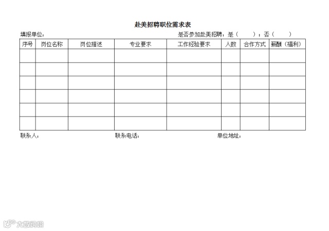 有意参加、或有招聘需求不参加赴美招聘的用人单位请填妥赴美招聘职位需求表,并于 7 月 12 日前以电子邮件的形式向蓬江区人社局人才中心报名。