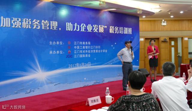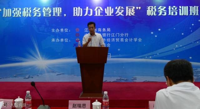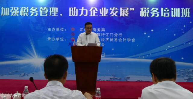 5月24日下午,由江门市商务局、中国工商银行(江门分行)联合主办,江门市外经贸会计学会、江门国际商会共同承办的“加强税务管理,助力企业发展”税务培训活动在工商银行江门分行举行。本次培训邀请资深税务规划师曾建斌老师为大家分享财税知识及传授税务实务的相关经验。市商务局局长赵瑞思,副局长李炳均,工商银行江门分行行长刘勇,副行长张振强等领导,以及企业代表等共100多人前来参加此次培训。
