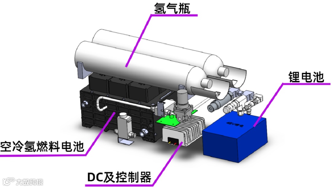锂电池:用于系统启动时,进行供电,以及配合燃料电池进行功率调节。