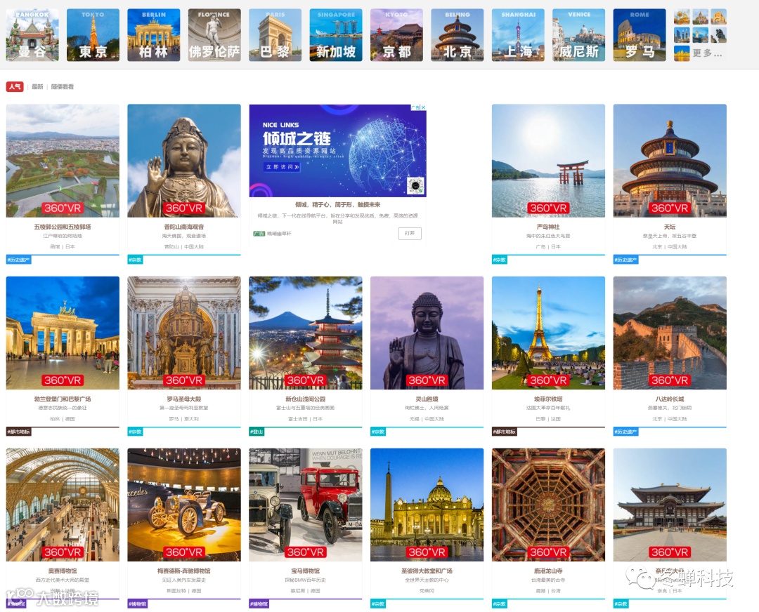无套路,回复关键词“220919”获取 一个提供全球全景图 360VR 的网站。身临其境的沉浸式VR体验,在这里不光有游戏中的炫酷科技场面,还有现实中全球各个国家的著名景点,同时网站还支持重力感应功能,不过重力感应功能只适用于手机或平板电脑体验更佳。在家也可体验旅游的快感大家感兴趣的可以了解一下~