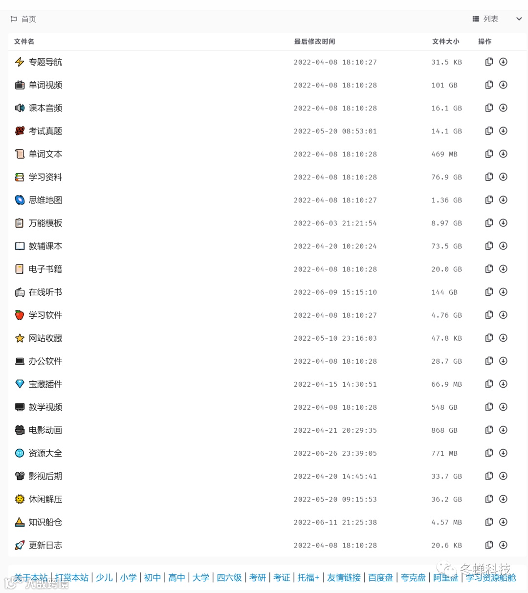无套路,回复关键词“220722”获取 B 站最全资源库网址。作者是B站Up主---TUO图欧君,网站是 UP 主把自己这些年来收集、整理的全部资源展示到了自己的网站,有云盘转存,也有直链下载。收藏夹已整理有英语/日语/中高考/四六级/考研/励志/自习室/资源分享等学习视频,祝你学习愉快~