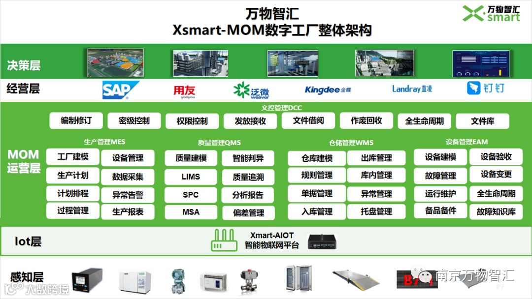 万物智汇(南京)科技有限公司是一家致力于为企业实现数字化转型的提供商。利用Xsmart算法平台、Xsmart智能工厂、Xsmart物联网平台,融合云计算、大数据、人工智能等多种技术,将生产运营各环节动态实时数据与外部供应链、客户数据有效整合,打破数据孤岛,提供从原料管控、过程管控、成品管控全生命周期解决方案,旨在建立质量全流程追溯体系,增强数字化生存发展能力,实现产业链协同发展。