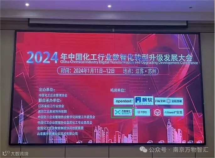 2024年1月11日,由中国化工企业管理协会、全国化工企业智能制造协同创新联盟主办,中国化工企业管理协会医药专业委员会、中国化工企业管理协会数字化转型工作委员会、南京江北新材料科技园、北京昊宇明博石化技术有限公司联合承办的“2024 中国化工行业数智化转型升级发展大会”在苏州拉开帷幕,万物智汇受邀参加会议并作主题演讲。