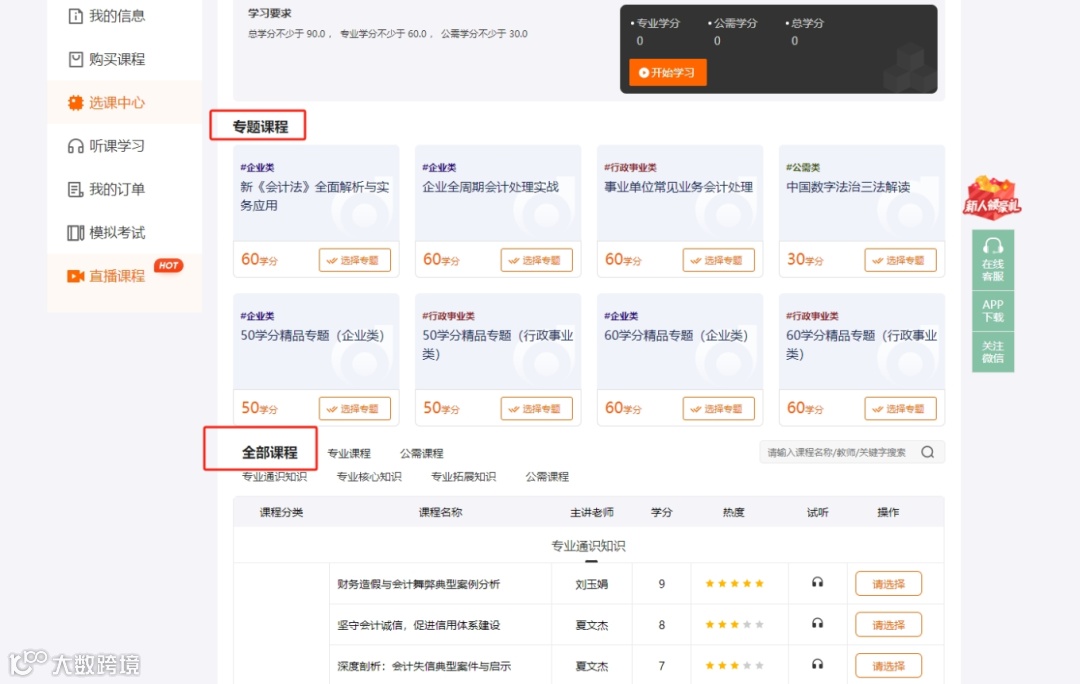 选课方面,会计人员有两种选择:
