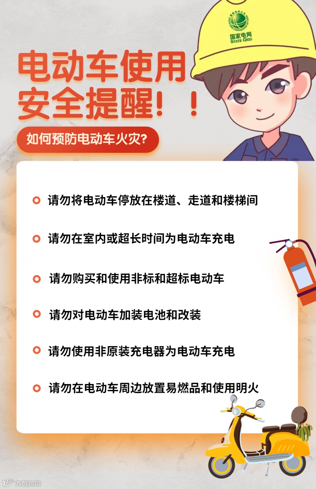 提示:千万别在楼梯间、过道或者室内充电,万一电动车起火,以免扩大火势,酿成火灾。