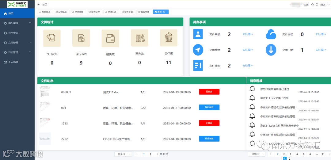 文件动态:实现审核流程规范化,接收文件便捷化,历史记录可溯化。