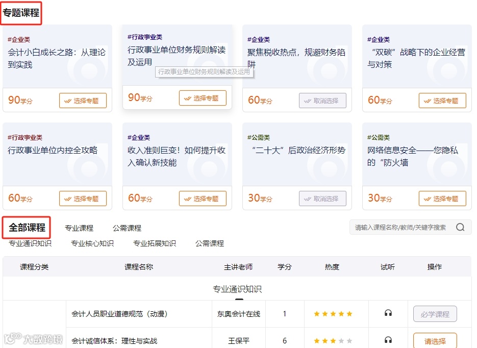 注:选课方面,会计人员有两种选择: