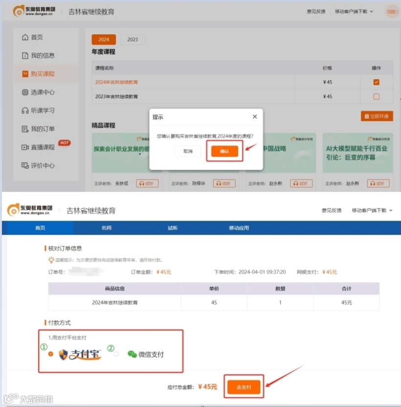 【1】会计人员成功登录进入学习中心后,点击“购买课程”,选择“2024年吉林继续教育”,点击“立即开通”。
