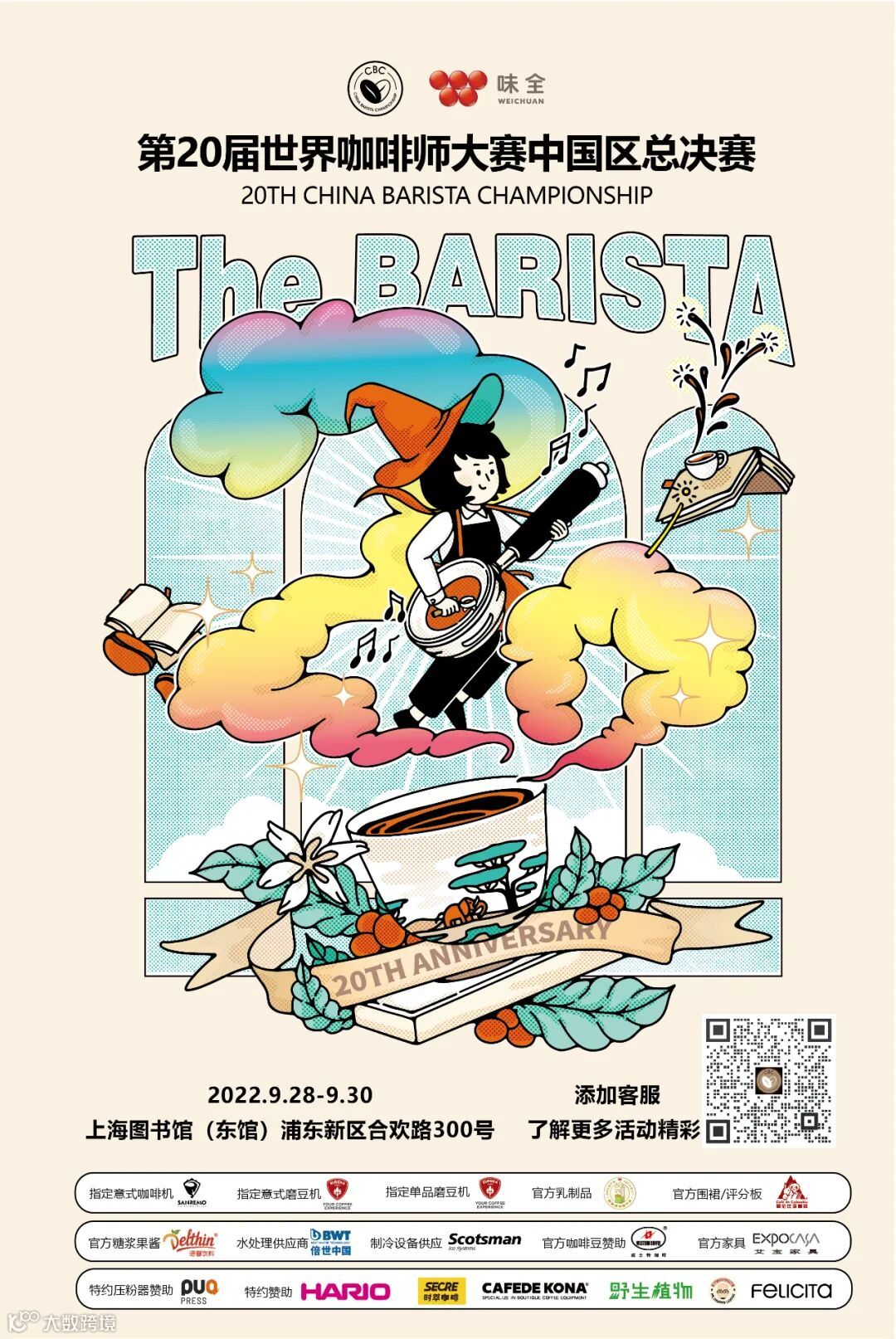 终于,9月28-30日,第20届世界咖啡师大赛中国区总决赛将正式在上海图书馆东馆 (合欢路300号)举办,赛事全程公开直播,也欢迎大家莅临现场观赛,体验咖啡带来的精彩。(*入场须提前预约并持48小时核酸阴性证明)