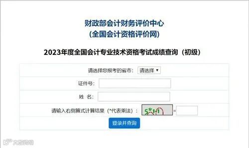 第三步:选择报考省市,填写证件号(身份证号码最后一位为"X"的使用大写字母"X")、姓名以及验证码,查询初级会计考试成绩。