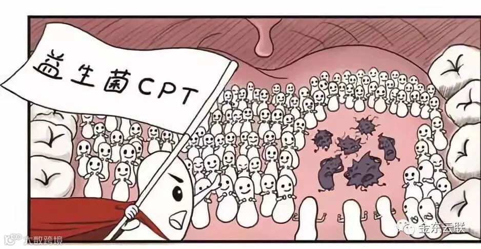 益生菌在肠壁上与有害菌竞争定植位点,争夺营养物质从而将有害菌从肠道中排挤出去。