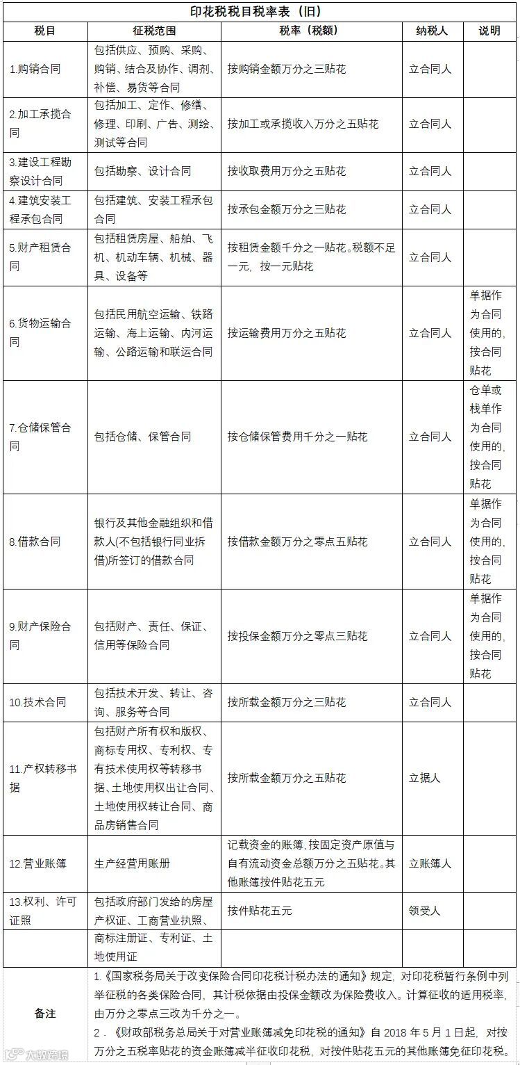 # 新旧税目税率对比 #