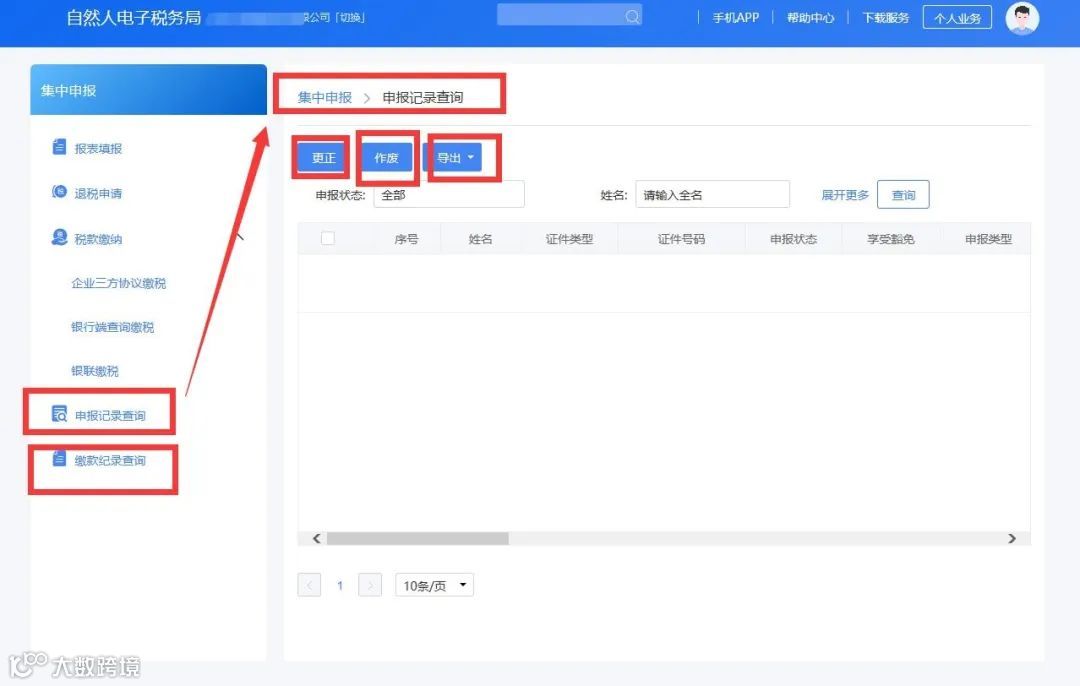 单位集中申报成功后,可以查询申报记录,也可以对申报记录进行更正、作废操作。
