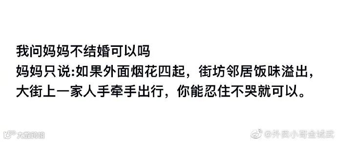 妈妈只说:如果外面烟花四起,街坊邻居饭味溢出,大街上一家人手牵手出行,你能忍住不哭就可以。