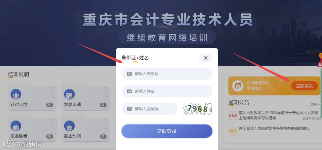 重庆市继续教育采用“身份证+姓名”的登录方式。进入到东奥网站重庆市继续教育页面后,在页面右侧登录窗口输入姓名和身份证号,点击登录即可。