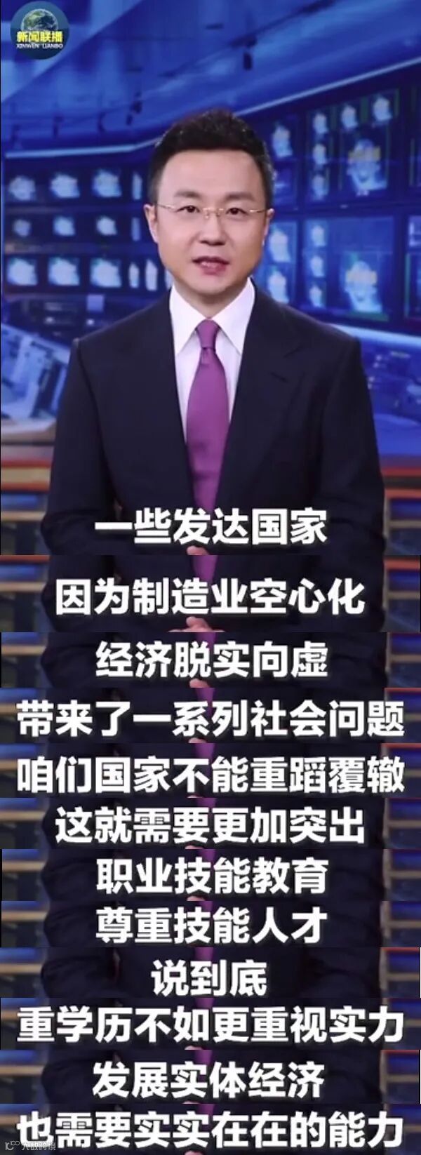 央视主播在谈到学历歧视现象中说到:“尽管大家觉得有问题的是这位HR,但事实上学历歧视现象仍不少见;重学历教育、轻技能教育的现象,也仍存在。目前,一些发达国家因经济脱实向虚等带来一系列问题。我们不想重蹈覆辙,就需突出职业技能教育,尊重技能人才。发展实体经济,也需实实在在的能力!”