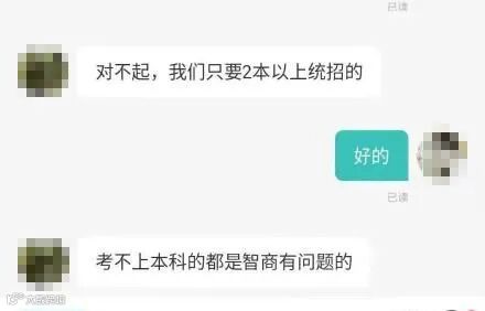 【杭州一位求职者想投递杭州城市大数据公司的产品运营岗位时,公司HR询问其学历,并表示只招收二本以上的,还称“考不上本科的都是智商有问题”】