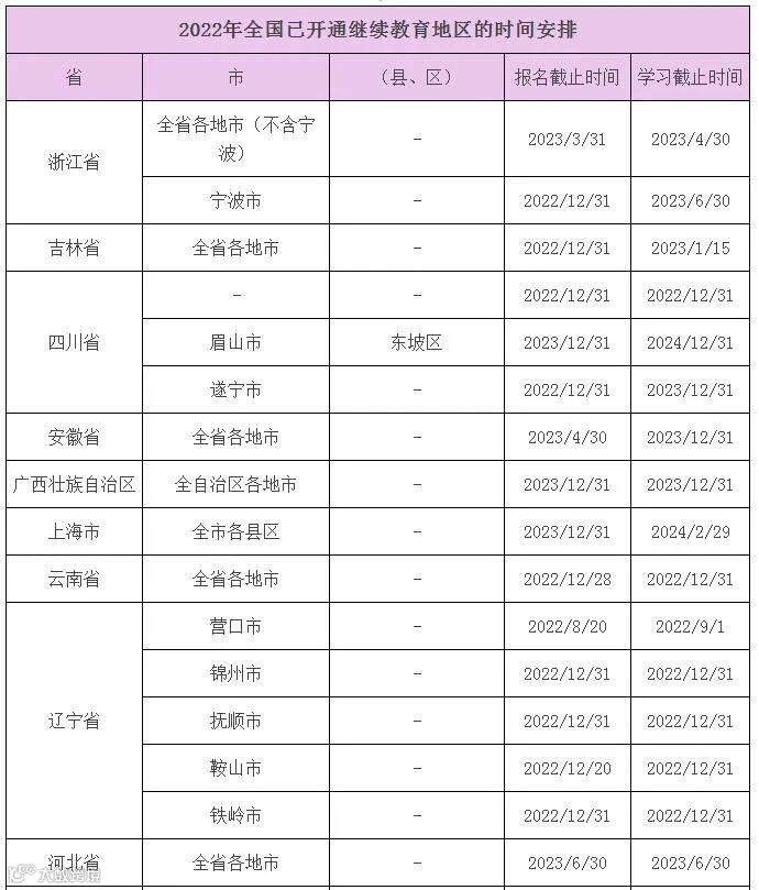 为了使大家更加明确各地区的时间要求,小编整理了2022年已开通地区的会计继续教育时间安排,大家快来看一下吧!