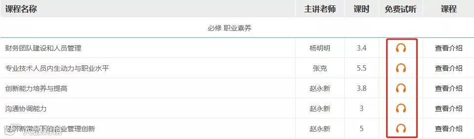 如果对每类课程都不是很了解,可以通过点击课程后面对应的“试听”进行查看 。