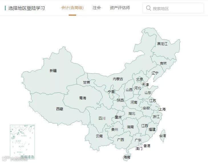 进入继教网站后,在左侧地图上选择所在的地区进行报名登录。
