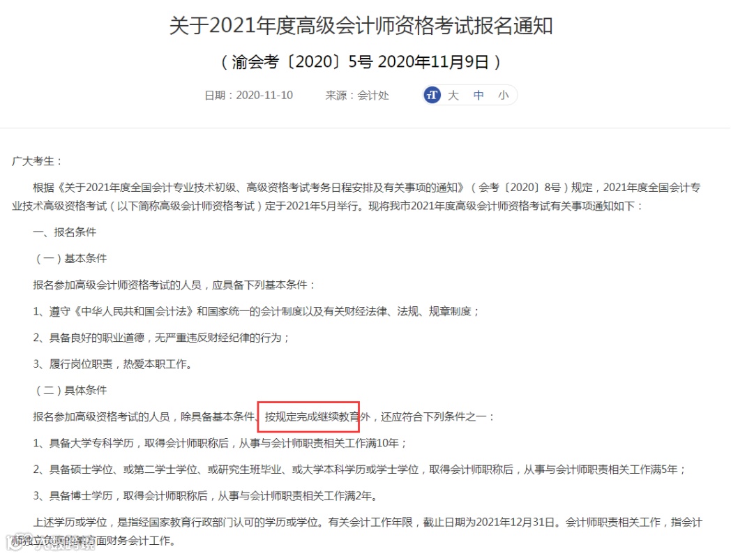 随着2021年度会计职称考试的开展,各地也发布了报名要求,其中有多数地区提到了需参加会计继续教育,如果忘记学习继续教育会直接导致错失报名机会,尤其是对于即将报名初级和高级的考生这些信息一定要知道!