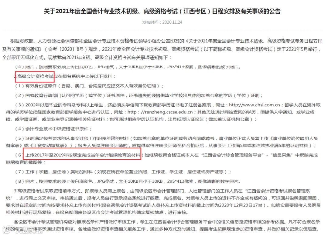 以上地区或在初级或在高级的考试报名要求中,明确了要求参加会计继续教育和提供参加年限记录,所以各位学员在报名前一定要满足继续教育的要求哦。