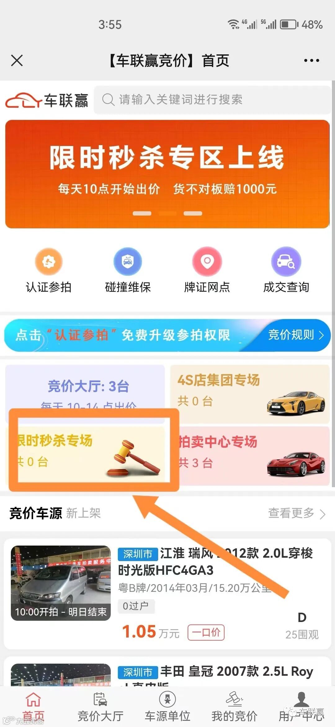 1:竞价大厅,在线批发车源,即时在线出价拿车!