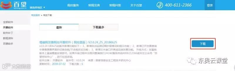 2.点击【软件下载】,选择【税控开票软件(税控盘版)V2.0.24 180625】