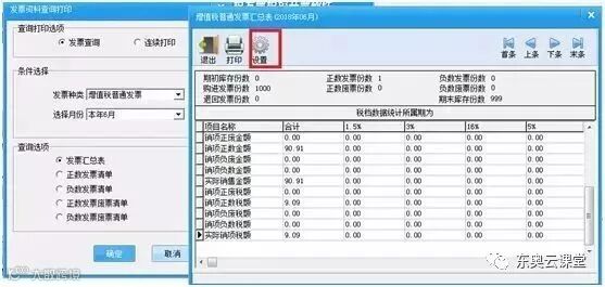 3、发票资料查询打印增加“设置”功能:点击查询打印-发票资料查询打印,增加“设置”功能,可以按月份设置票种显示的税率并进行打印。