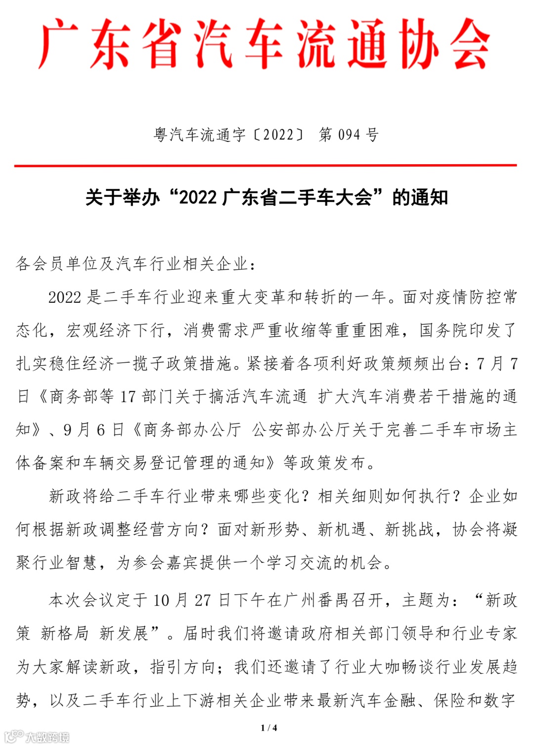 10月27日召开:2022广东省二手车大会,现在报名还来得及!