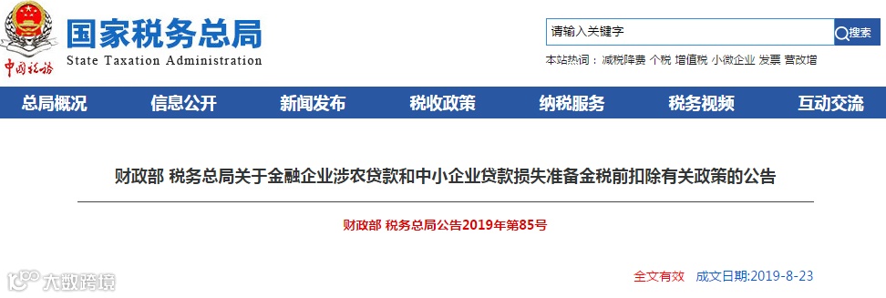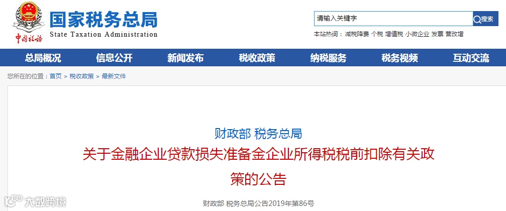 金融企业贷款损失准备金企业所得税税前扣除政策