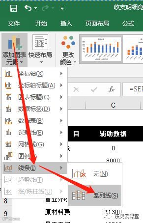 打开【添加图表元素】,选择【线条】中的【系列线】